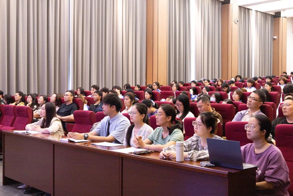 吴卫洁校长以“弘扬伟大抗战精神 勇担强国复兴使命”为题,分别从“精神丰碑:铭记抗战历史赓续红色血脉”“知行合一:践行抗战精神汲取奋进力量”“追光逐新:弘扬抗战精神勇担复兴使命”三个方面展开讲授。