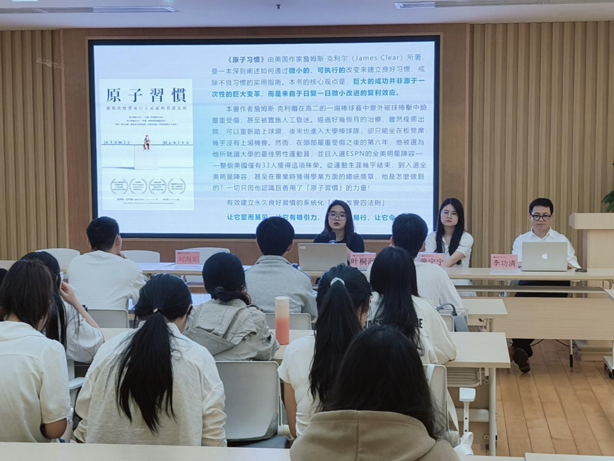 在本次读书会中,叶桐润老师以独特的视角,将实用主义的“工具书”《原子习惯》与充满家国情怀的“理想书”《巨流河》相结合,构建了一场关于“自我塑造”与“家国理想”的深度对话。她首先深入浅出地解读了《原子习惯》中关于系统构建、身份认同等核心理念,引导同学们关注微小改变的复利效应,掌握科学的自我成长方法。