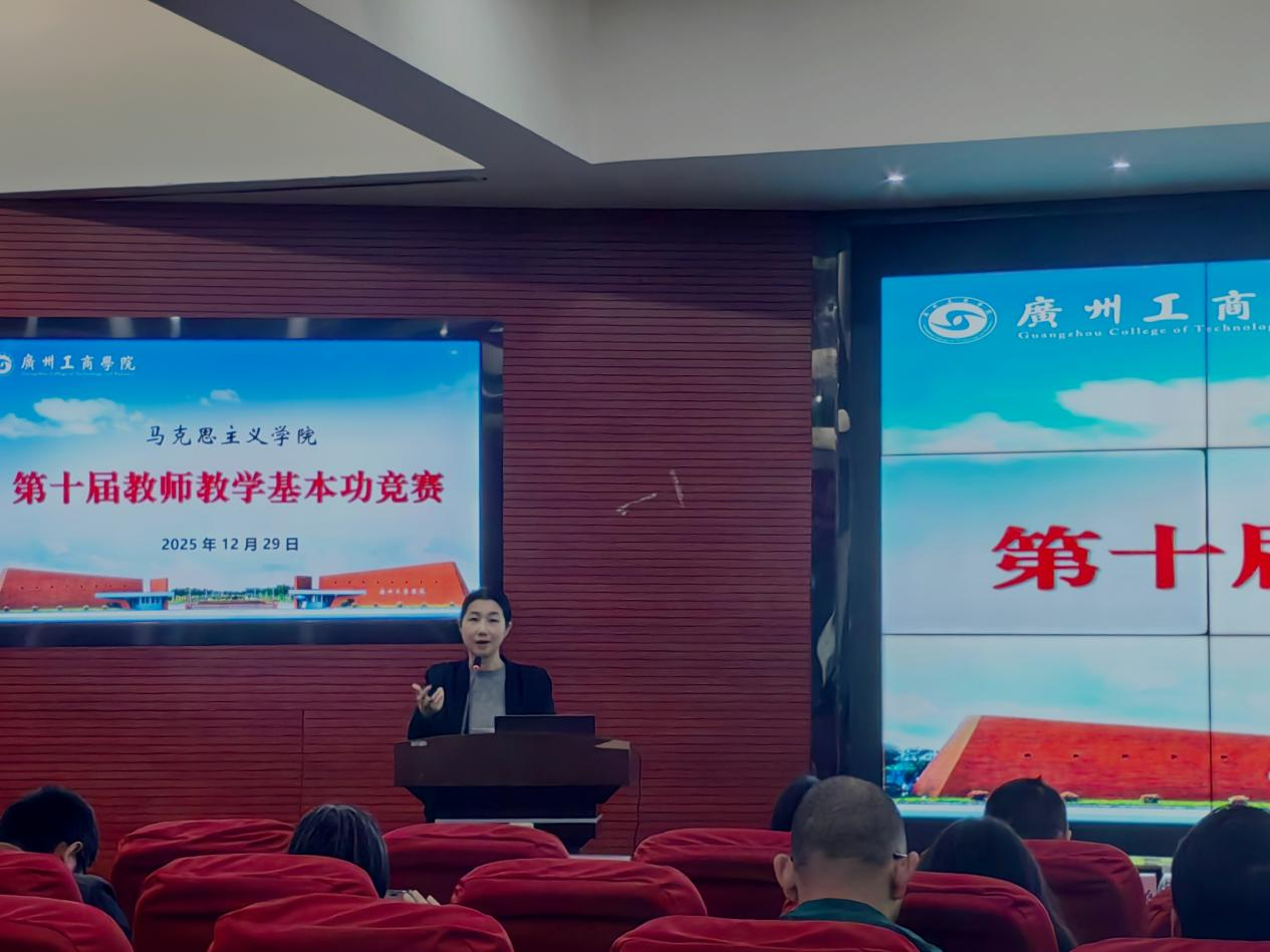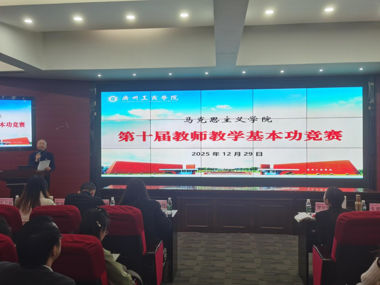 为大力推进党的二十届四中全会精神融入思政课,深入贯彻落实习近平总书记关于思政课建设的重要指示,贯彻新时代学校思政课建设推进会精神,夯实教师教学基本功,提高专业素养,提升教学质量,马克思主义学院于2025年12月29日上午,在三水校区办公楼322会议室举办了第十届青年教师基本功比赛。本次比赛由马克思主义学院《思想道德与法治》教研室主任彭艺格老师主持,马克思主义学院教学指导委员会成员担任评委,马院青年教师现场观摩比赛。
