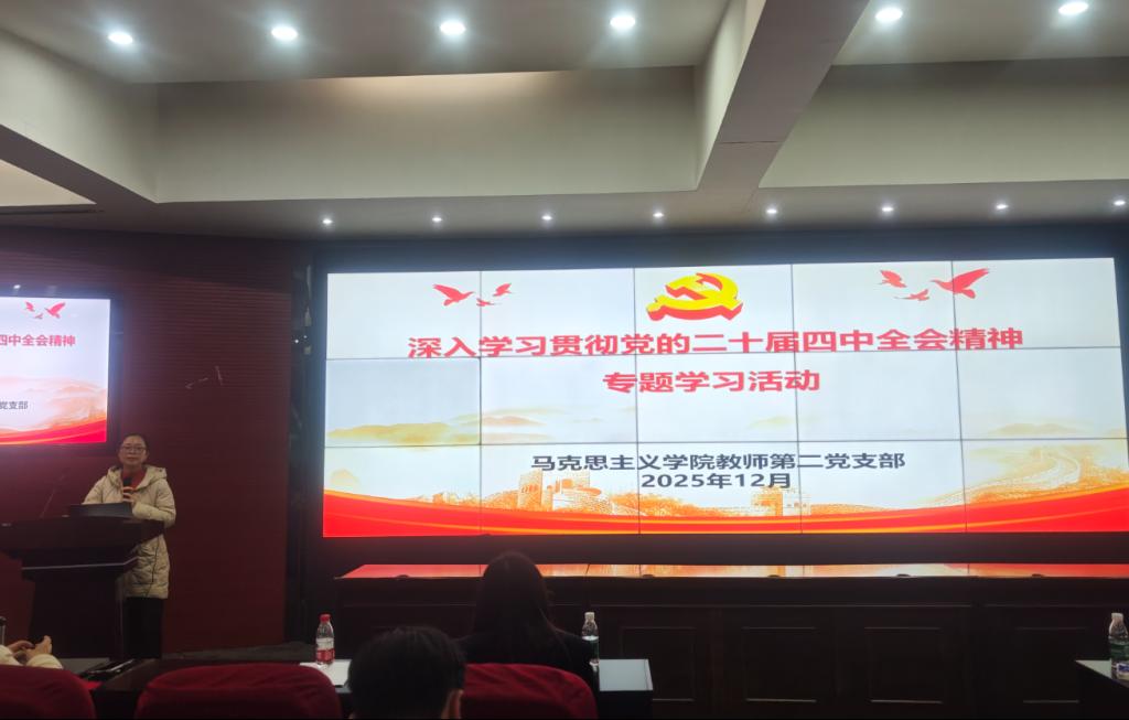 为深入学习贯彻党的二十届四中全会精神,进一步加强支部建设,马克思主义学院教师第二党支部于12月29日下午在新时代讲习所召开党员大会,全面总结2025年度党建工作,并组织开展专题理论学习和教师座谈会。会议由教师第二党支部书记陈晓晨副教授主持,支部全体党员教师参加。