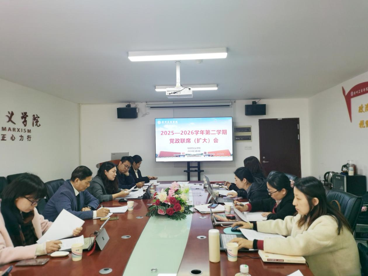 为深入学习贯彻党的二十届四中全会精神,推动党建与业务深度融合,共同谋划学院新学期发展蓝图,广州工商学院马克思主义学院于2026年3月4日上午,在三水校区院部楼424室召开了2026年春季学期第一次党政联席会议。广州工商学院副校长兼马克思主义学院院长漆小萍出席会议,马院领导班子成员、党总支成员、教研室主任参加。