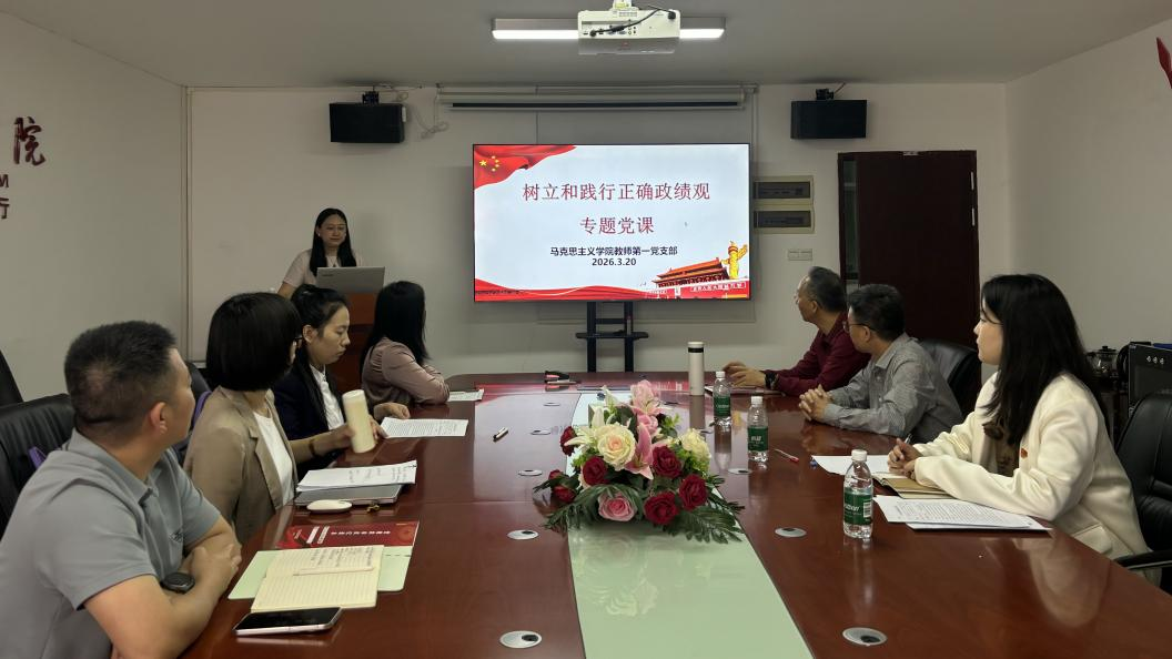 为深入学习贯彻习近平总书记关于树立和践行正确政绩观学习教育的重要讲话和重要指示精神,明确新学期党建工作方向,2026年3月20日下午,马克思主义学院教师第一党支部在三水校区院部楼424会议室召开新学期党员大会暨专题党课活动。会议由支部书记王云丽主持,教师第一党支部全体党员参会。