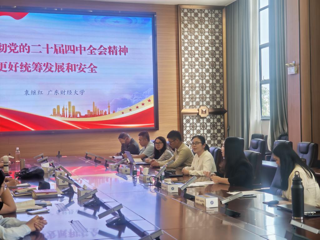为深入学习贯彻党的二十届四中全会精神,推进党的创新理论有机融入思政课教学,提升思政课教师的理论素养与教学能力,3月25日下午,马克思主义学院特邀广东财经大学研究生院院长袁继红教授在花都校区图书馆412会议室作党的二十届四中全会精神融入思政课专题讲座。讲座由学院党总支书记、执行院长周静副教授主持。