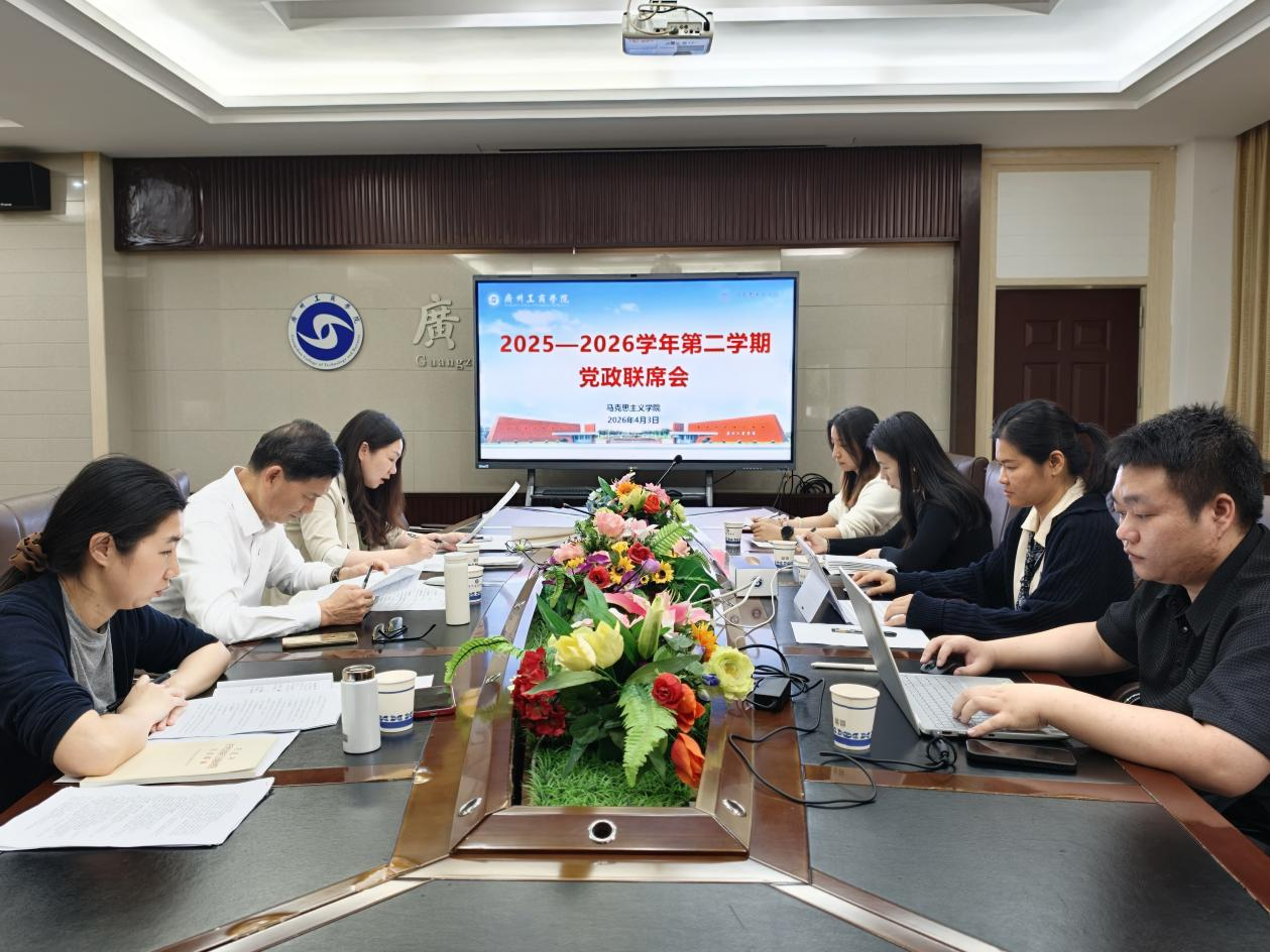4月3日上午,马克思主义学院在花都校区办公楼106会议室召开了2026年春季学期第二次党政联席会议。学校副校长兼马克思主义学院院长漆小萍出席会议,马院领导班子成员、党总支委员、思想政治理论课实践教学课程教研室主任参加会议。