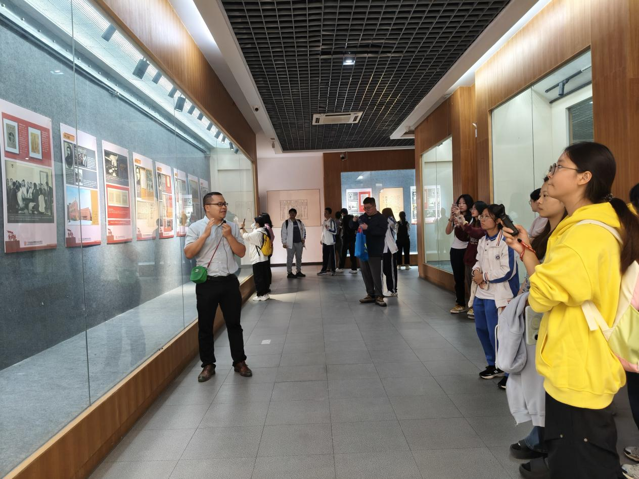 在革命历史展区,泛黄的典籍与斑驳实物前,师生屏息驻足,聆听汪凡家博士讲述英德人民在烽火岁月中投身民族解放斗争的英勇事迹,深切感悟革命先辈的家国情怀。“历史是最好的教科书”,学院教师结合展品背后的故事现场开讲,引导学生在红色传承中坚定理想信念,从发展成就中感悟理论力量。同学们边听边记,不时交流感悟,在沉浸式学习中传承红色基因、赓续红色血脉。