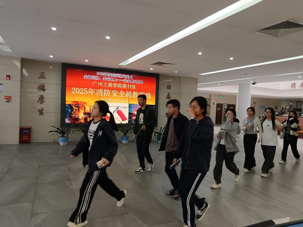 【本网讯】为深入贯彻落实2025年全国消防宣传月活动要求,全面强化图书馆消防安全管理,提升全体馆员及读者的应急避险与自救互救能力,2025年11月13日下午,广州工商学院在两校区图书馆同步举行了一场大规模、实战化的消防应急疏散演练。本次演练以“全面消防,生命至上——安全用火用电”为主题,由图书馆、消防安全委员会和保卫处联合策划实施,图书馆馆长王蕙、副馆长王自东、消防安全委员会副主任张光军、保卫处副处长詹建业全程进行现场演练指导,图书馆全体职工、消防安全委员会和保卫处工作人员及在馆学习的500余名读者共同参与。