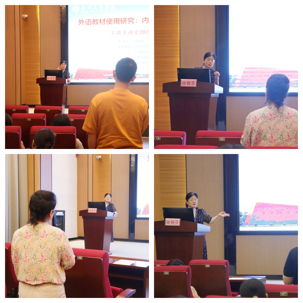 【本网讯】10月16日,“工商大讲堂”2025年第十六期学术讲座在广州工商学院花都校区成功举办。本次讲座由外语学院、广东多语种教育发展研究中心、广州工商学院商务翻译研究所联合主办,特邀华中科技大学二级教授、博士生导师徐锦芬担任主讲嘉宾,围绕《外语教材使用研究:内容、方法及理论框架》展开深入讲解。讲座由外语学院党委书记、院长刘沛富教授主持,外语学院百余名教师到场聆听。