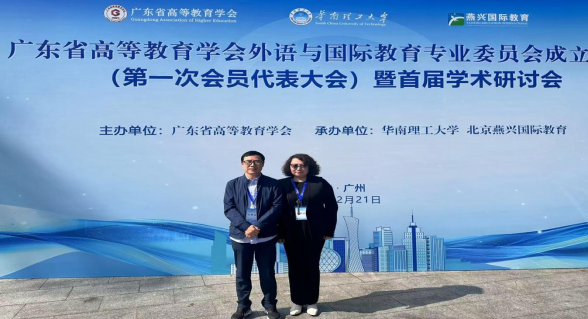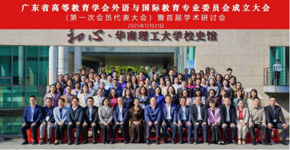 2025年12月21日,广东省高等教育学会外语与国际教育专业委员会成立大会暨首届学术研讨会在广州隆重召开。广州工商学院外语学院成功当选会员单位,院长刘沛富教授、副院长邢佳平副教授、商务英语教研室主任兼专业负责人周正秀老师、副主任刘国明以及龙辉五人入选专委会第一届理事会理事。