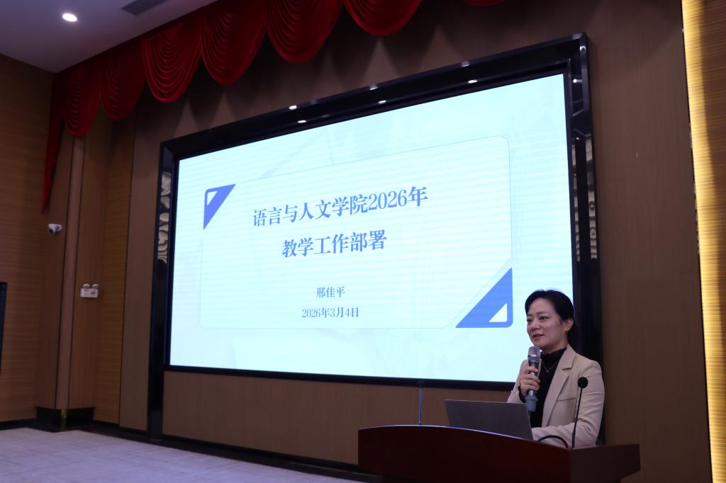 会上,邢佳平副院长就新学院成立后的教学工作作部署。她指出,本次大会是语言与人文学院成立后的首次教职工大会,更名改设是学校深思熟虑、系统论证后的战略安排,并非简单“换牌子”。全体教师要与学校学院发展同频共振,主动走出舒适区;外语与中文两支队伍要同心同向、互学互鉴,借助中文教师加入深化中华文化理解与阐释,形成协同育人合力。
