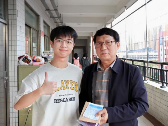 与高海泉老师及学校任课老师亲切交谈,汇报在广州工商学院的大学学习生活、学习商务英语专业的收获与在大学的个人成长,了解了母校的教学现状、高三的备考进度和高一新生的适应情况,并亲手转交定制留言信件,与老师合影留念。