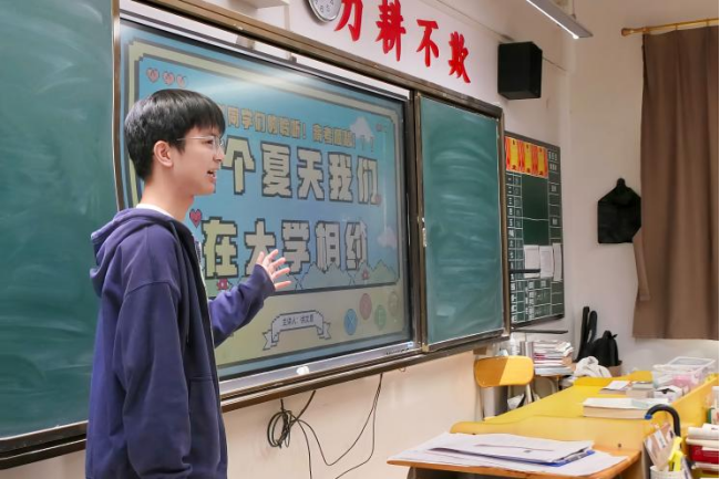 活动前两周,队长徐文恩主动联系榕城中学班主任高海泉老师,明确回访意图,获得老师与学校的支持,敲定活动时间与形式,为我校争取进班宣讲及操场摊位宣传的机会。