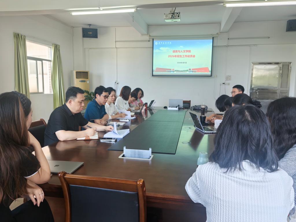 【本网讯】4月1日下午,语言与人文学院召开2026年招生宣传工作动员会,会议由刘沛富院长主持。会议传达了学校招生宣传工作部署,旨在凝聚共识、压实责任,全面启动本年度招生宣传工作。学院领导班子、各专业教研室主任及相关教师参加会议。