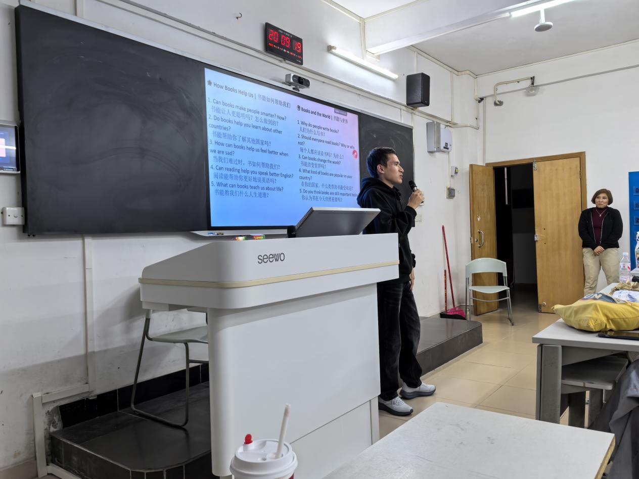 11月4日晚,外语学院第七期英语角活动"Power of Books: Dive into Knowledge!"在浓郁的书香氛围中圆满落幕。本次活动由外教Steve、Pamela与商务英语教研室教师Stan共同主持,带领同学们开启了一场别开生面的阅读之旅。