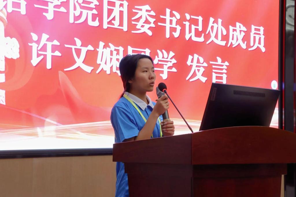 外语学院团委书记处成员许文娴同学进行发言,她总结了团学近期工作中存在的不足,结合自身分享了对外语学院团学的感悟和体验;并且以此勉励团学的干部与干事更加积极地参与团学活动,从中获得满足和反馈,有所收获。