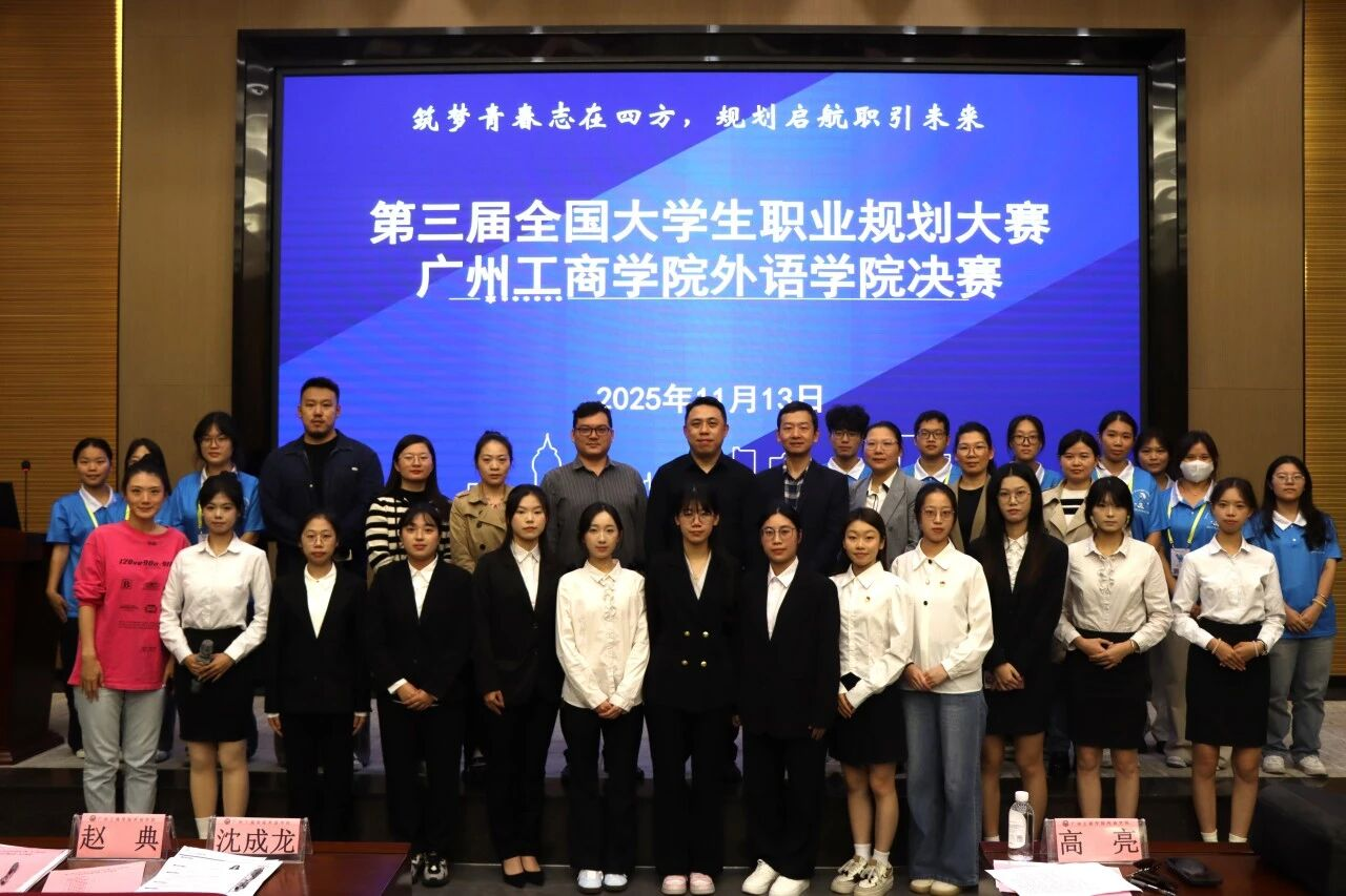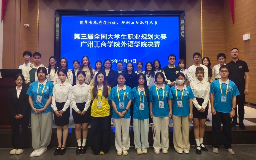 为深入贯彻党中央、国务院关于高校毕业生就业工作的决策部署,全面落实“十四五” 就业促进规划的通知要求,紧密结合学校“以德为行,以学为上”的教育理念与“德学五进”教育实践活动,进一步强化大学生职业生涯规划意识、提升就业核心竞争力,2025年11月13日晚,外语学院于图书馆415、416报告厅成功举办第三届全国大学生职业规划大赛广州工商学院外语学院选拔赛决赛。