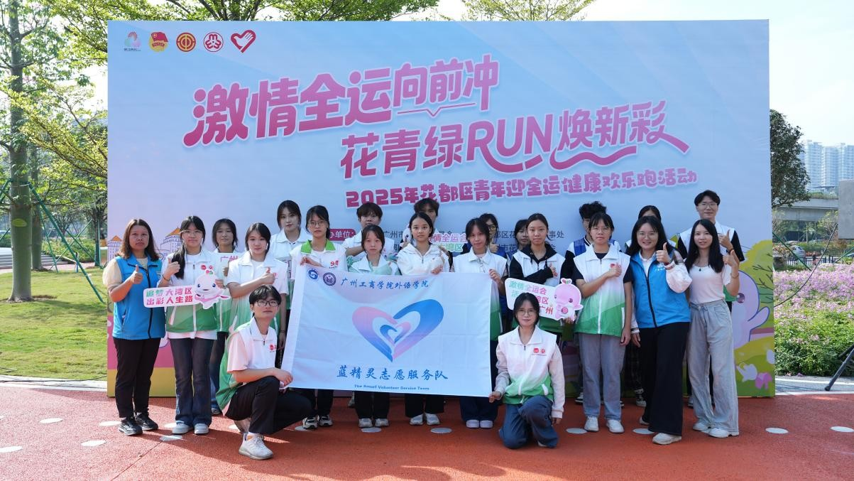 为积极践行我校德学“五进”之“进社会"教育实践活动,迎接第十五届全运会的到来,积极响应“绿色全运、低碳全运”的号召,2025年11月8日,广州工商学院外语学院蓝精灵志愿服务队、外语学院学生第三党支部应邀赴城际公园,参与以 “激情全运向前冲、花青绿 RUN 焕新彩” 为主题的青年迎全运健康欢乐跑活动,为全运助力添彩。旨在通过青春奔跑的形式,激发青年参与体育运动的热情,弘扬志愿精神,传递绿色环保理念,展现志愿者的活力与担当。