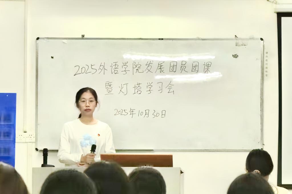 为深入贯彻新时代共青团员培养要求,夯实团员队伍建设根基,外语学院于图书馆414与外语楼102教室举行了2025年外语学院“青马工程”培训暨灯塔学习会。出席本次灯塔学习会的有:外语学院党委青年委员毕玉祥老师、团委书记傅瑾老师,各年级入团积极分子、25级新生团员及全体团学干部。