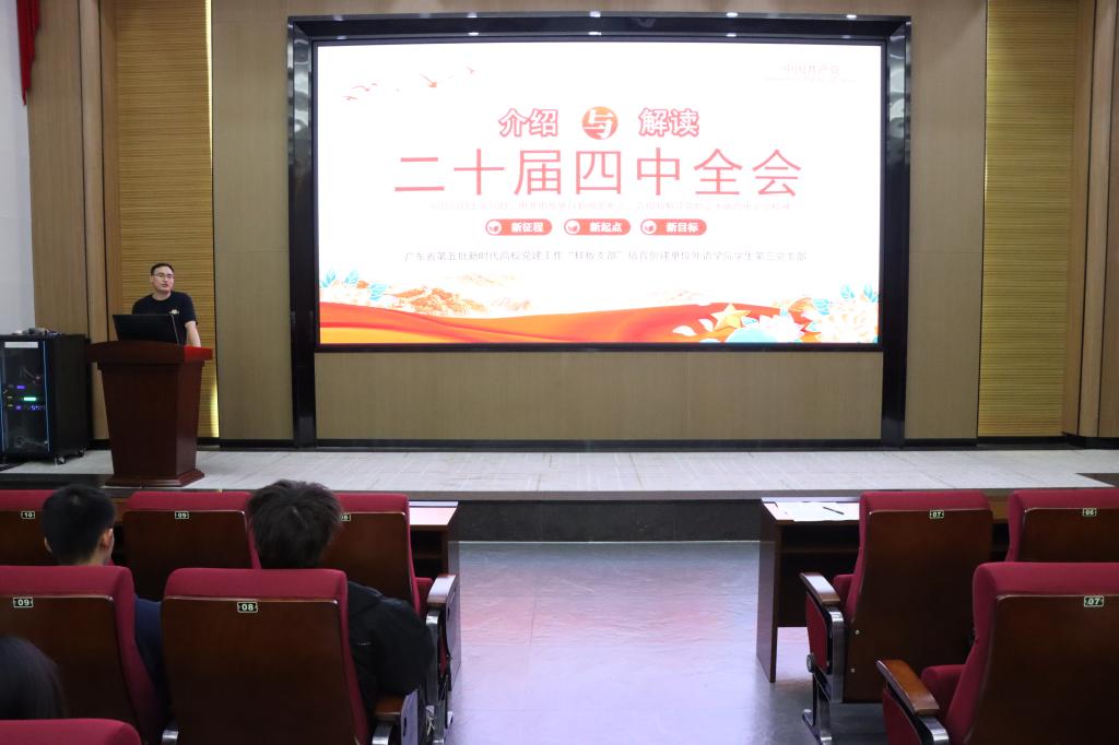 2025年11月3日19:00,外语学院第7期积极分子和发展对象党校培训班专题党课于图书馆415学术报告厅顺利举行。外语学院党委青年委员毕玉祥同志担任主讲人,全体学员共同学习党的二十届四中全会精神。