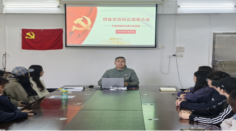 为深入贯彻落实新时代党的建设总要求,进一步强化基层党组织战斗堡垒作用、充实党员队伍骨干力量,外语学院学生第三党支部于2025年12月29日下午,在外语楼301会议室召开中共预备党员转正通表大会。本次会议由党支部书记毕玉祥同志主持,支部全体师生党员参会。