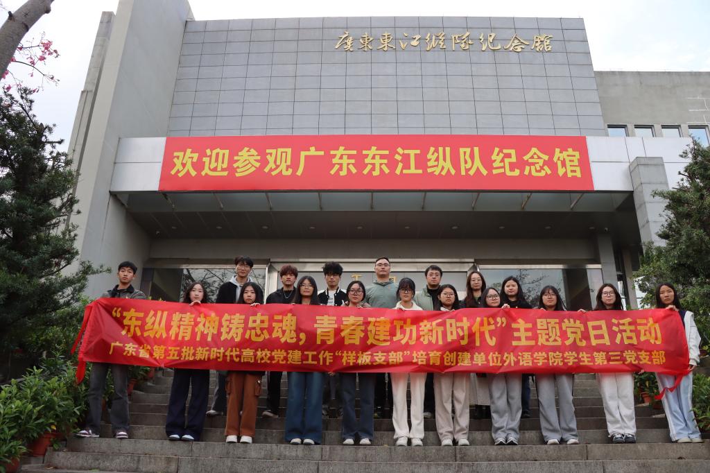 此次主题党日活动的开展,是外语学院党委培育创建广东省第五批新时代高校党建工作“样板支部”的一次理论与实践结合的重要育人活动,外语学院学生第三党支部充分运用“大思政课”的育人功能,有效强化了支部成员的党性修养和责任意识,以革命先辈为榜样,传承和弘扬东纵精神,将学习感悟转化为奋进实干的强大动力,以实际行动践行初心使命。