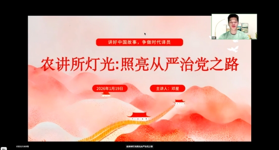 为深入学习贯彻习近平新时代中国特色社会主义思想,持续推进全面从严治党走深走实,学生第三党支部于2026年1月19日组织开展了第二期微党课学习活动。本次微党课由邓星同志主讲,他以《农讲所的灯光:照亮全面从严治党之路》为主题,通过回顾广州农民运动讲习所的革命历史和学习二十届中央纪委五次全会精神,引导支部党员和积极分子深入理解全面从严治党的时代意义与自我担当。