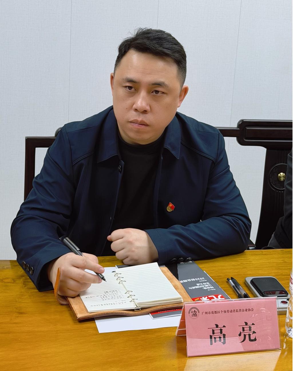 广州市花都区个体劳动者私营企业协会会长陆世强、党支部副书记徐庆燎、秘书长骆永谦及多位副会长对高亮副院长一行的到访表示热烈欢迎,并组织召开专题座谈会深入交流。座谈会上,陆世强会长系统介绍了协会发展历程与服务体系,重点解读了(据介绍)协会正在打造的区级个私协党建品牌“花协红掌柜”的建设理念、推进路径与阶段规划,并就品牌创建的组织体系、活动策划与宣传推广等工作作了说明。他表示,协会当前正处于党建品牌培育与体系化推进的关键阶段,尤其在党务工作策划、品牌传播与队伍建设方面亟须专业力量支撑,同时表达了对党建工作专业人才的迫切需求。