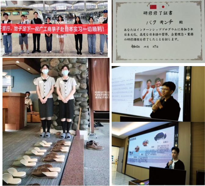 我校外语学院与希尔顿酒店、ANA万座海滨洲际酒店、汤快连锁餐厅等日本知名企业合作,为学生提供优质的海外实习机会。自2020年起,已有100余名日语专业学生赴日参加实习,涵盖酒店管理、设备维护、餐饮服务等多个岗位。学生在实习过程中不仅提升了日语口语能力,也增强了商务实践能力,国际化实践成效显著。其中,2022级专升本学生黄毅滔、2023级专升本学生陈坤林、吴奇骏在日本栃木县、群马县参与了该项目。