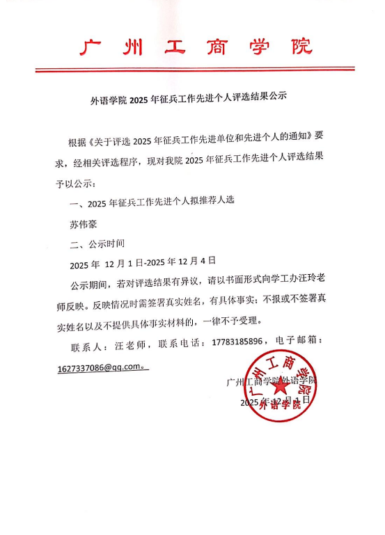外语学院关于推荐招生和就业先进个人候选人的公示
