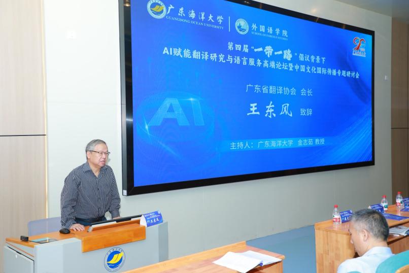 论坛开幕式上,广东海洋大学副校长周昌仕教授和广东省翻译协会会长王东风教授依次发表致辞,着重强调了在“一带一路”倡议与AI技术深度交融的背景下,翻译研究及文化传播所蕴含的重要时代意义。随后,来自广东外语外贸大学、中南大学、华南理工大学等知名高校的学术专家,围绕翻译学科范式的演进、中国文化的国际传播实践等议题,展开了深入的主旨报告。这些报告不仅为与会者提供了兼具理论深度与实践价值的前沿学术启迪,更为后续研究指明了清晰的探索方向。
