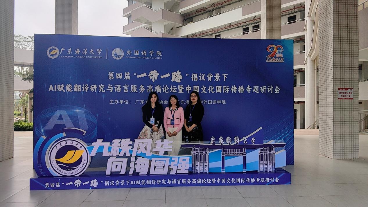2025年11月8日至9日,第四届“一带一路”倡议背景下AI赋能翻译研究与语言服务高端论坛暨中国文化国际传播专题研讨会在广东海洋大学隆重召开。本次论坛由广东省翻译协会与广东海洋大学外国语学院联合主办,以“推动翻译创新发展,服务‘一带一路’人文互通”为主题,汇聚了海内外翻译学界专家、教育学者、高校教师等共百余位参会者。我校外语学院徐婉洁、谢孟希、冯华明三位教师出席本次论坛,深度参与专题学术研讨,深入了解翻译学科与教育领域的前沿研究热点及实践应用动态。