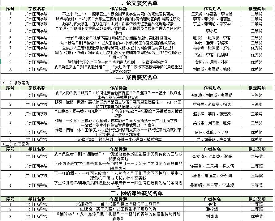 在此向所有获奖老师表示祝贺!我校将持续推进辅导员队伍专业化、职业化建设,不断提升学生教育管理工作水平,以更扎实的举措产出更优质的成果,推动学校育人工作再上新台阶。