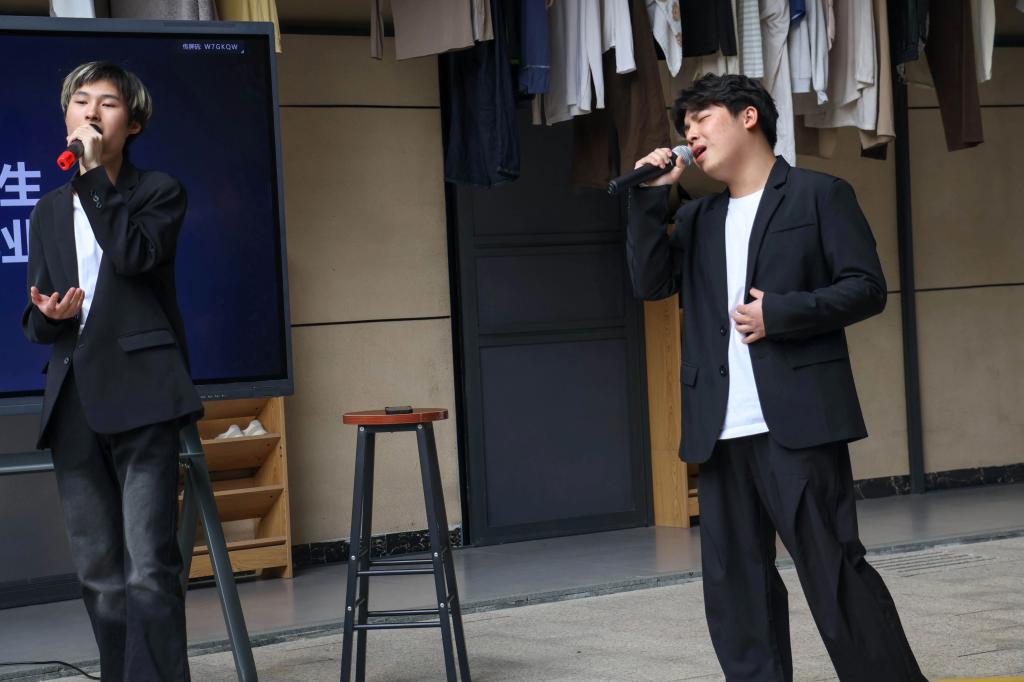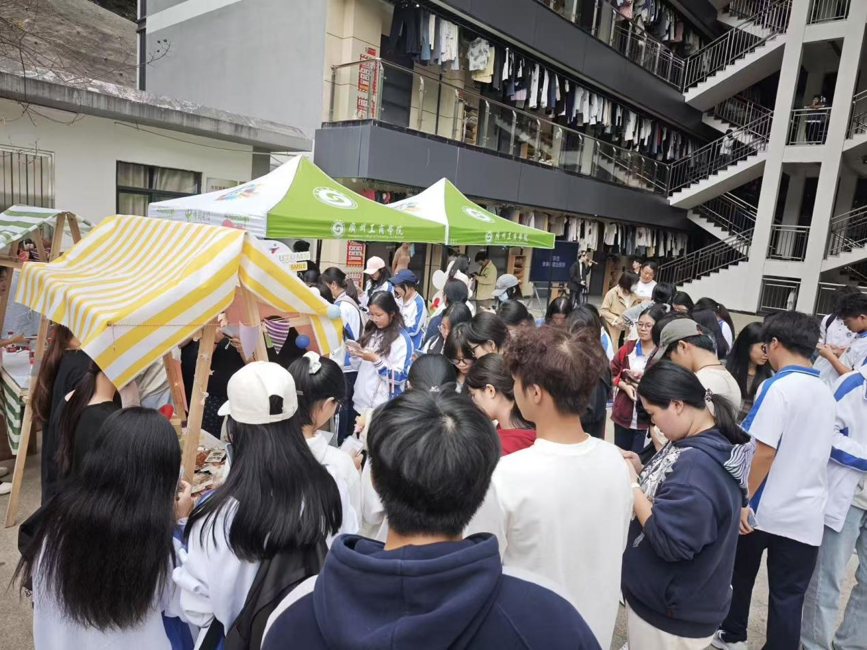 会议结束后,与会领导、师生共同移步至“音韵草木·染织秋声”音乐节互动活动现场,本次活动在“向阳”一站式学生社区举行,社区内特别设置了 “音韵草木·染织秋声”音乐节互动体验区与学生资助知识竞答区,现场气氛活跃,同学们参与踊跃。