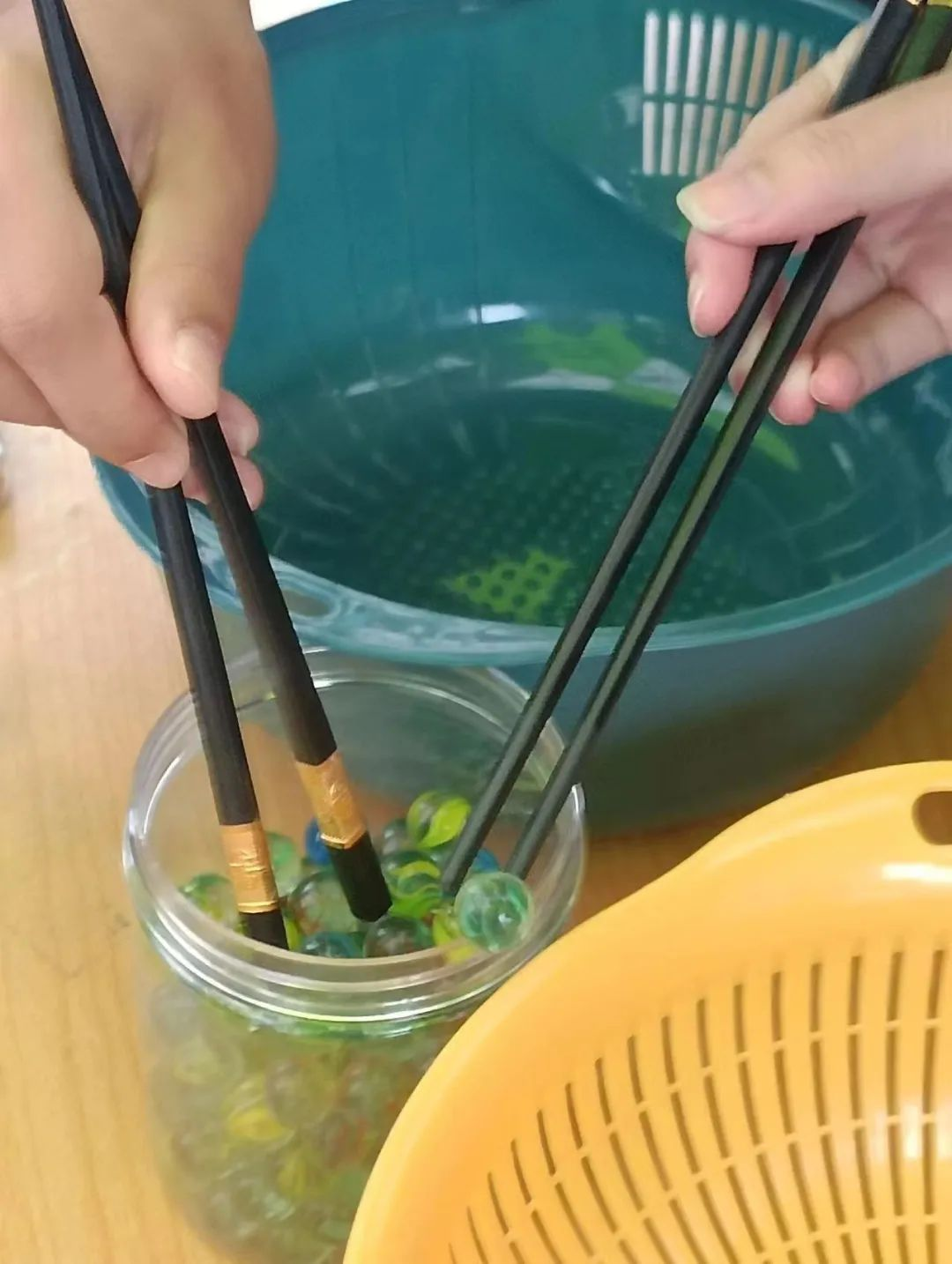 在一分钟的比赛中,同学们用筷子夹起弹珠并放入另一个容器中,夹得多的同学将获得胜利。这个活动考验了同学们的专注力和快速反应能力。