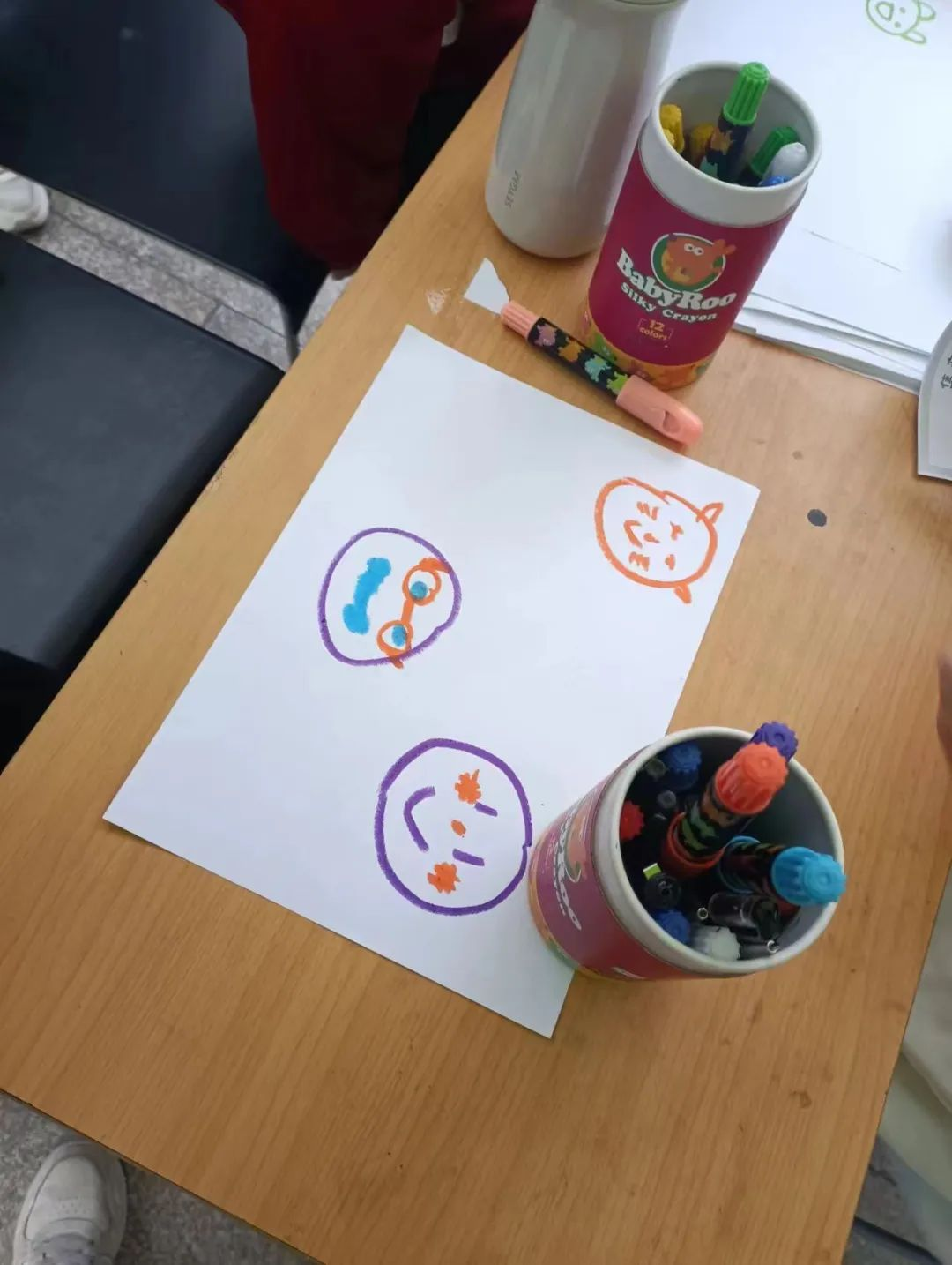 同学们在空白的纸上画出各种积极的表情。在放松心情的同时也增强了自我表达的勇气。这个活动让同学们感受到积极情绪的力量,并鼓励他们以更积极的态度面对生活。