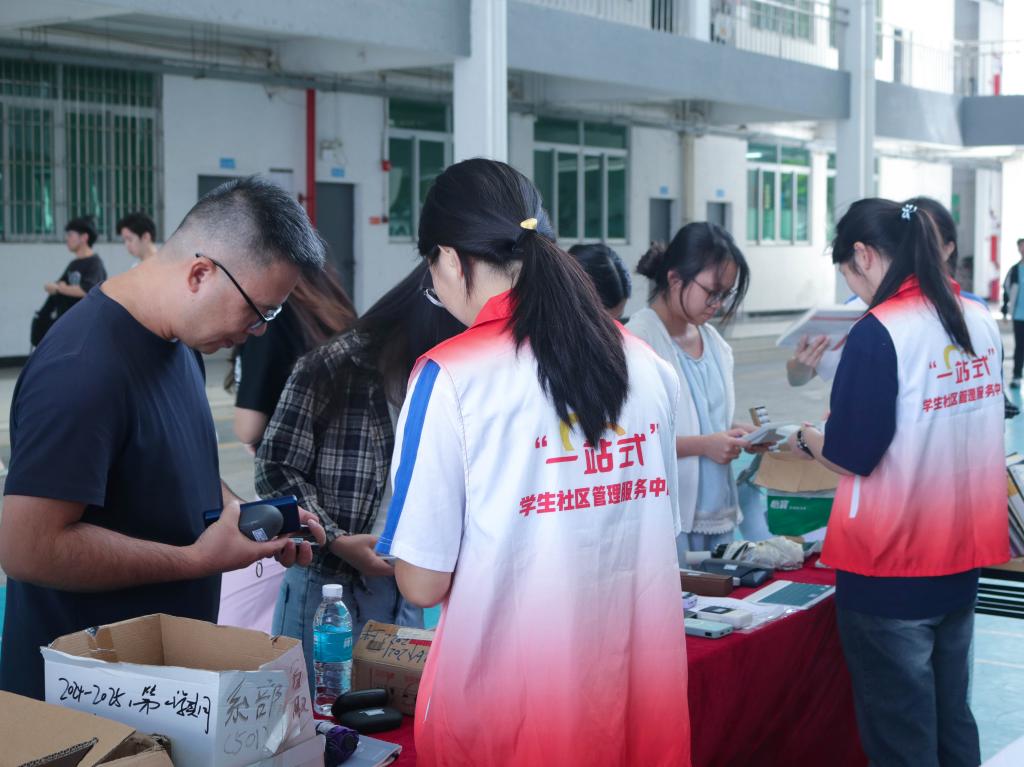“一站式”学生社区管理服务中心以“德学·五进”教育理念为引领,坚持以德为行、以学为上,积极开展“进课室、进图书馆、进实验实训室、进体育场馆、进社会”的“五进”教育实践活动,聚焦于“学习能力、应用能力、表达能力、交际能力、健体能力、创新能力”的“六能”培养目标,将育人功能融入社区服务全过程。主要职能是社区管理和师生服务,精准对接师生日常高频业务,于两校区分设6个办事窗口,集水电卡、户籍管理、失物招领、学生证补办、文件递送、邮件收发、爱心雨伞、入住及退宿办理、调宿申请、扫楼申请,打印成绩单、在读证明、简历等多项功能,致力于为师生提供优质、便捷、高效的一站式集成服务,打通服务师生的“最后一公里”,响应多元需求,扎实保障师生校园生活。