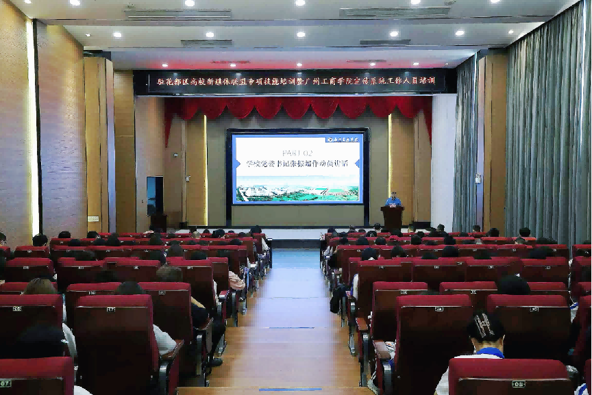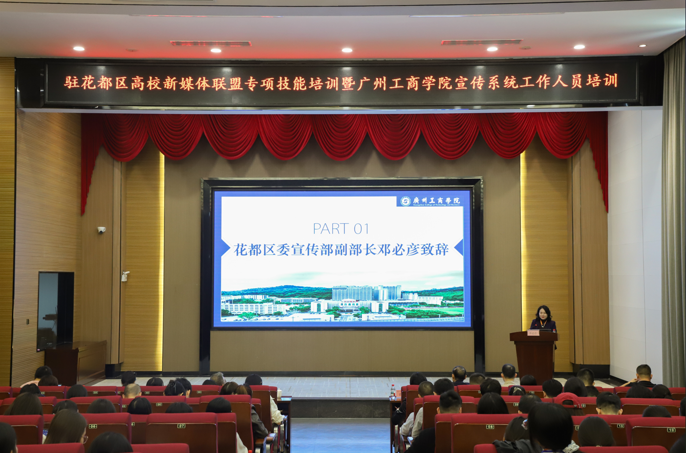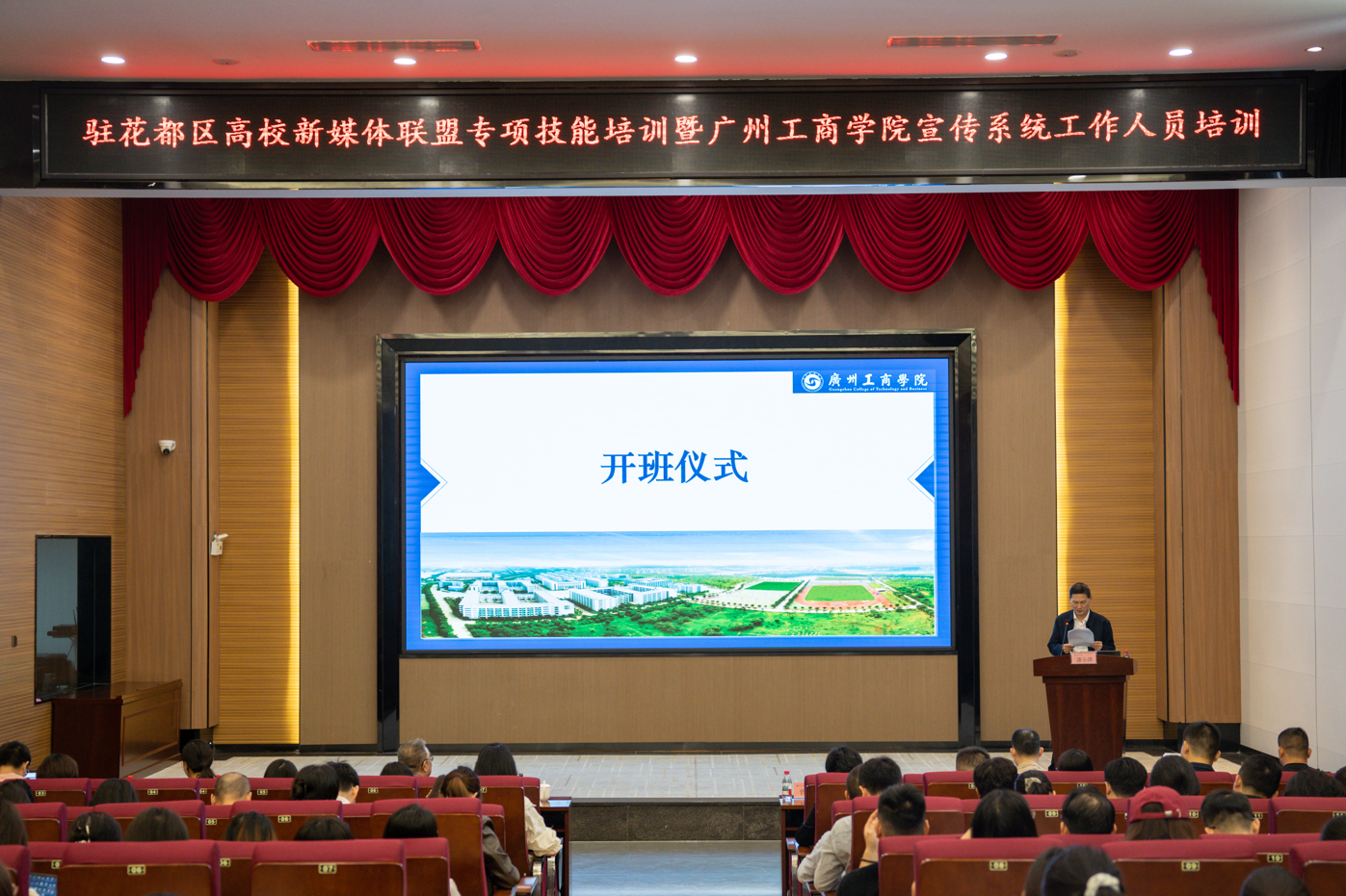 【本网讯】10月29-30日,驻花都区高校新媒体联盟专项技能暨广州工商学院宣传系统工作培训在广州工商学院举行。花都区委宣传部副部长邓必彦、广州工商学院党委书记张振超出席开班仪式并讲话,花都区高校新媒体联盟成员单位领导、师生骨干及广州工商学院宣传系统工作人员近300人齐聚一堂,共同学习新闻摄影及写作、新媒体写作及传播、AI短视频创作、网络意识形态安全与高校舆情应急处置等技能。本次培训班旨在提升高校新媒体工作队伍专业素养,推动区域高校新媒体融合发展,构建“大宣传”工作格局。广州工商学院副校长漆小萍主持开班仪式。