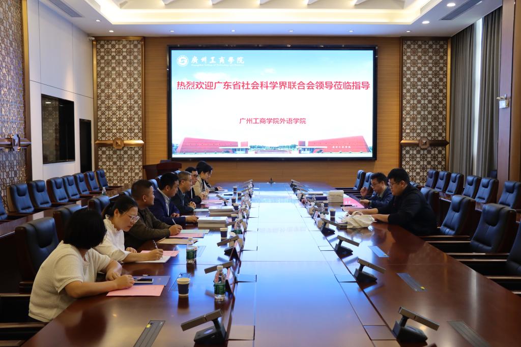 【本网讯】11月4日上午,广东省社会科学界联合会二级巡视员何方俊、决策研究咨询中心王桢莅临广州工商学院花都校区,就广东多语种教育文化发展研究院(以下简称 “研究院”)建设情况开展专项考察。学校副校长汪前元,校长助理、科研处处长马超平出席,科研处、外语学院相关负责人以及研究院核心科研骨干代表参会。