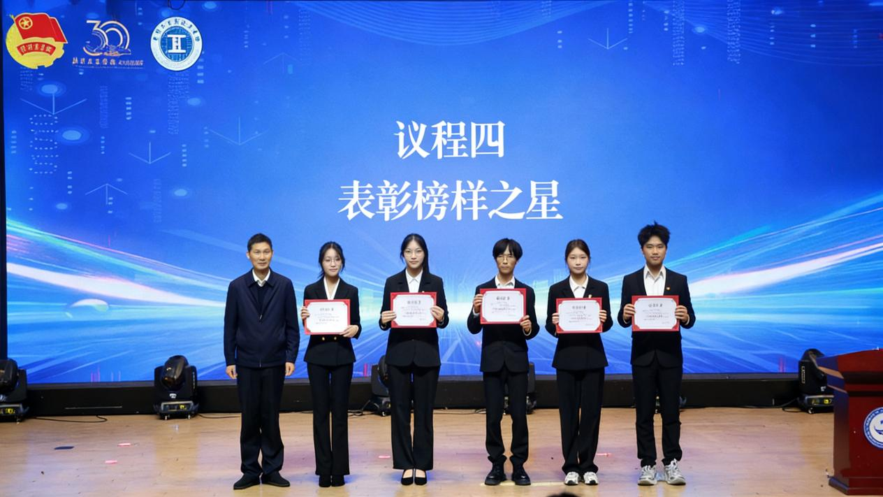 表彰环节将大会推向高潮。本学年共评选出“勤学笃行之星”“科研创新之星”“文体活力之星”“公益之星”“学生骨干标兵”五类榜样之星。漆小萍副校长、易亚军校长助理、张永平院长、宋锋华书记、苏建贤副处长等领导嘉宾分别为获奖学生颁奖并合影留念。这些优秀学子在学业科研、文体活动、志愿服务、学生工作等领域奋发有为,生动诠释了“德学·五进”的深刻内涵,是全院学子学习的鲜活榜样。