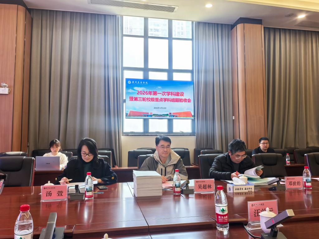 【本网讯】为系统总结校级重点学科建设成果,精准谋划学科高质量发展,1月12日,广州工商学院2026年第一次学科建设暨第三轮校级重点学科结题验收会在花都校区顺利召开。会议由汪前元副校长主持,校长助理、科研处处长马超平,校外专家华南师范大学吴超林教授、广东财经大学邓世豹教授、广州大学汤萱教授,重点学科负责人及相关学院院长、分管科研副院长参加会议。