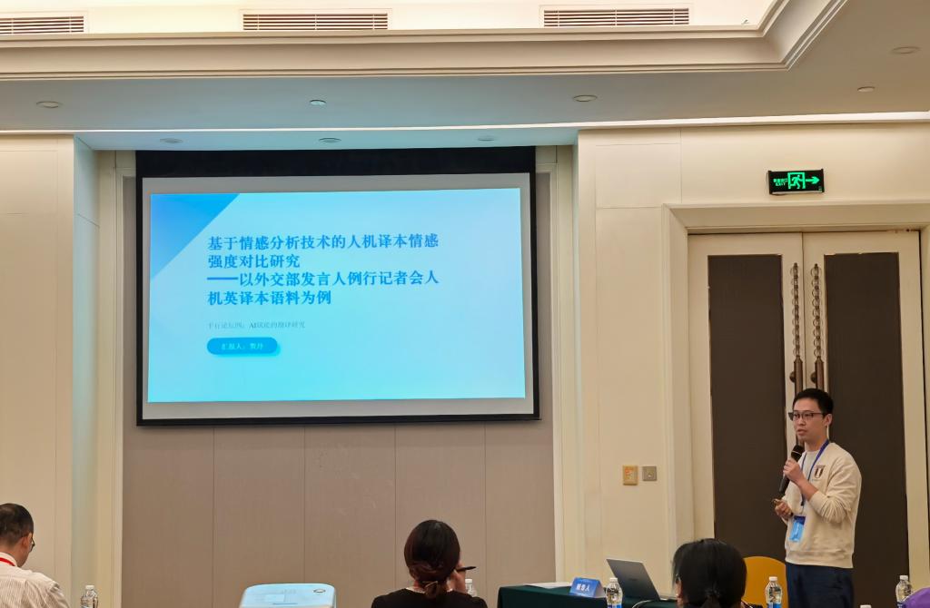贺丹老师在分论坛5“AI赋能的翻译研究”中作了题为《基于情感分析技术的人机译本情感强度对比研究——以外交部发言人例行记者会人机英译本语料为例》的报告。研究基于大语言模型DeepSeek-R1消歧的英文情感词典工具,结合定量与定性分析方法,以情感强度为观测指标,从句层与词汇层对外交部发言人例行记者会语料的人机译本在情感强度上的异同进行了系统分析。