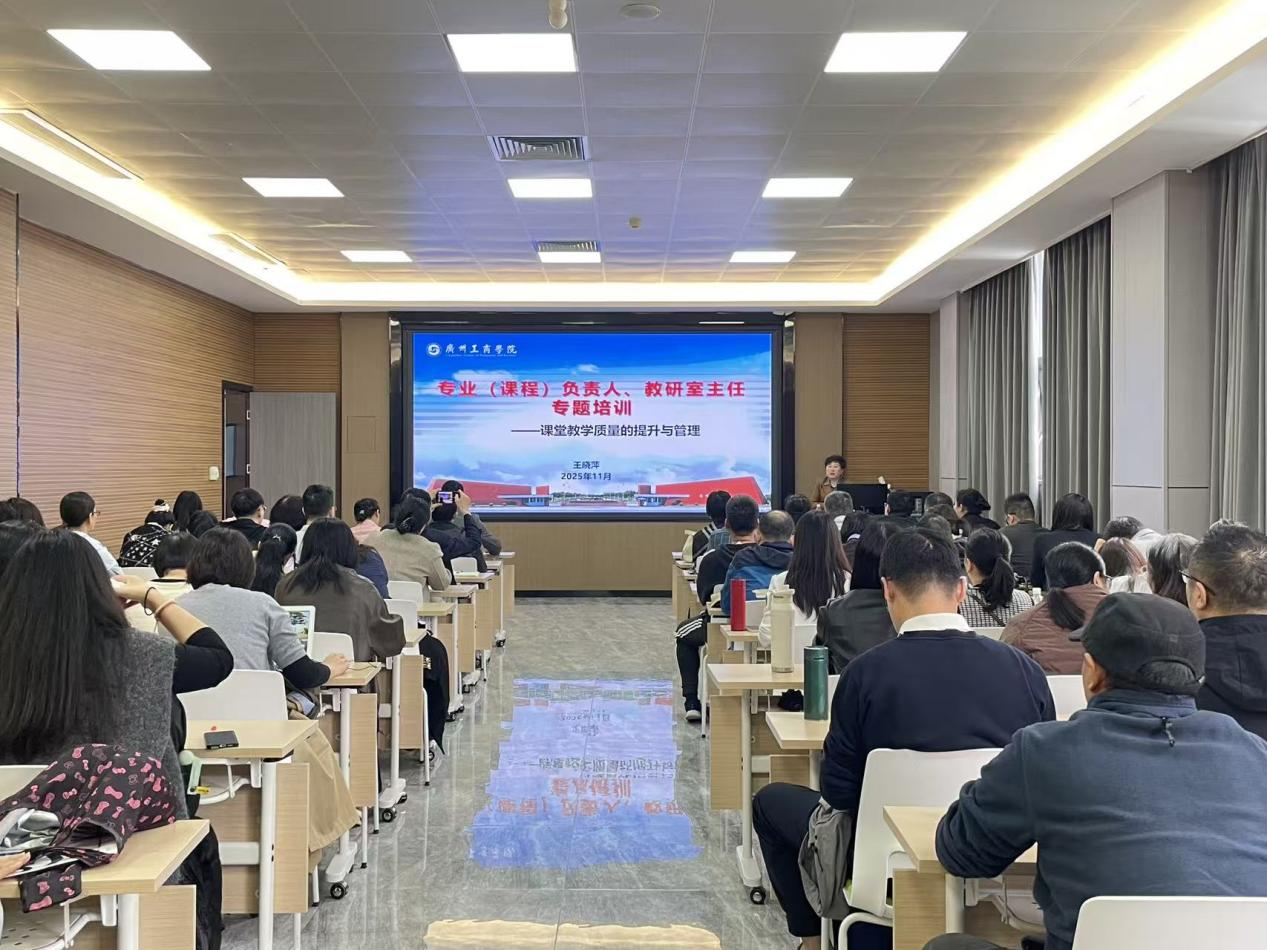 【本网讯】11月4日下午,学校教师教学发展中心在花都校区举办专业建设与课程建设负责人系列培训(第三场)。本次培训旨在进一步提升我校课程负责人的教学管理能力与课堂教学质量建设水平,推动课堂教学改革深入开展,助力学校教育教学高质量发展,培训由学校校长助理易亚军主持。
