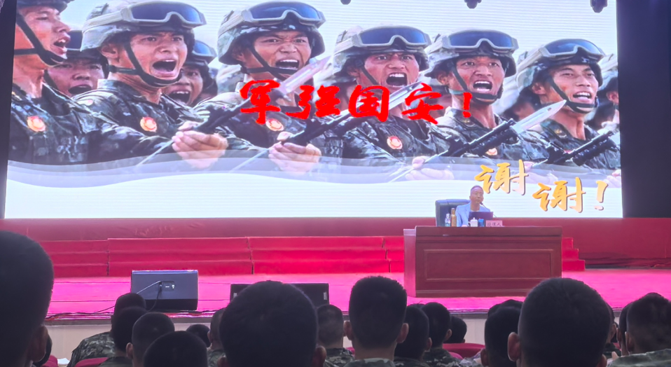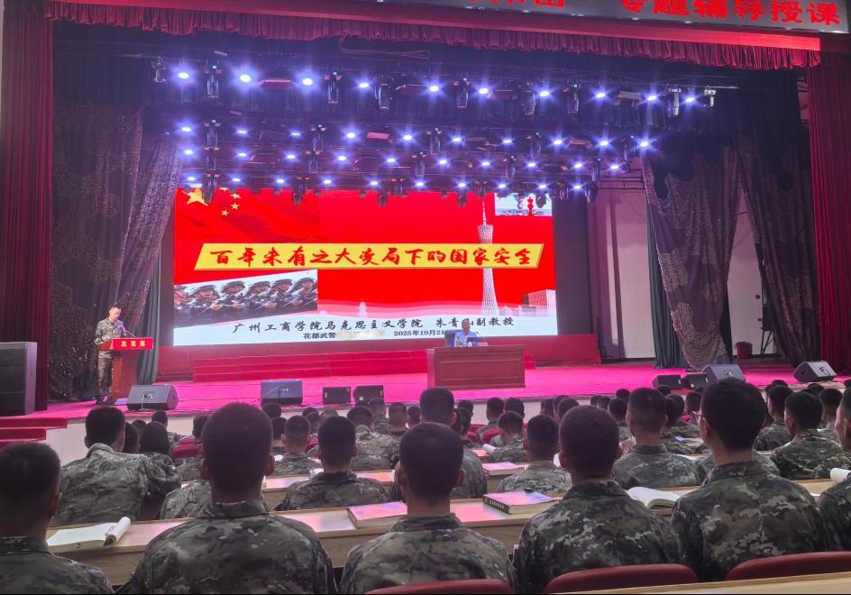 【本网讯】为全面践行总体国家安全观,进一步增强部队官兵国家安全意识,扛起国家安全责任,提升维护国家安全能力,10月21日上午,广州市花都区驻区武警某部特别邀请广州工商学院马克思主义学院朱青山副教授开展国家安全教育宣讲活动。当天大礼堂约2800名武警官兵参加本次活动,武警部队首长们及花都区委国安办张颖华副局长、刘源科长均亲自到场全程聆听讲座,现场反响热烈,多次爆发出雷鸣般的掌声。