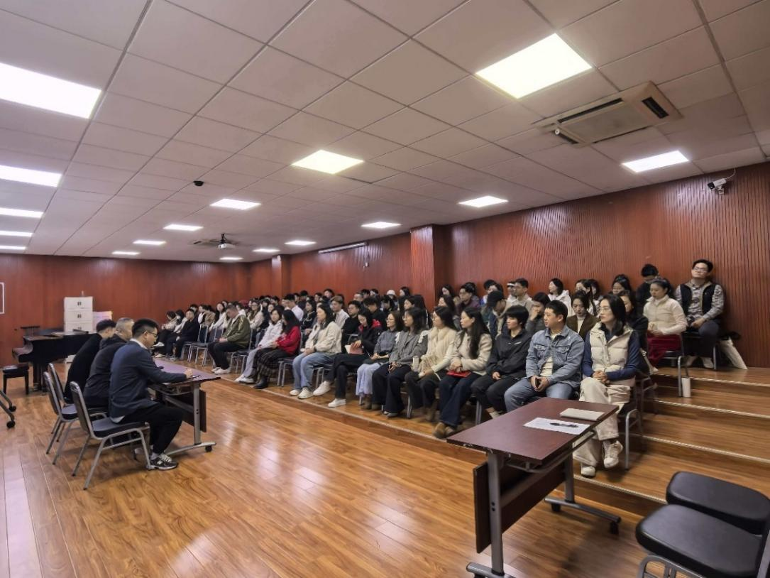 春启新章,笃行不怠。为明确2025-2026学年第二学期工作方向,凝聚全院教职工奋进力量,音乐学院于2026年3月4日9:00召开新学期全体教职工大会,全面总结过往成效,部署新学期重点工作。会议伊始,学校领导亲临现场,为全体教职工送上新春的诚挚问候与暖心红包,把学校的关怀与期许传递到每一位老师心中,现场暖意融融、氛围热烈。