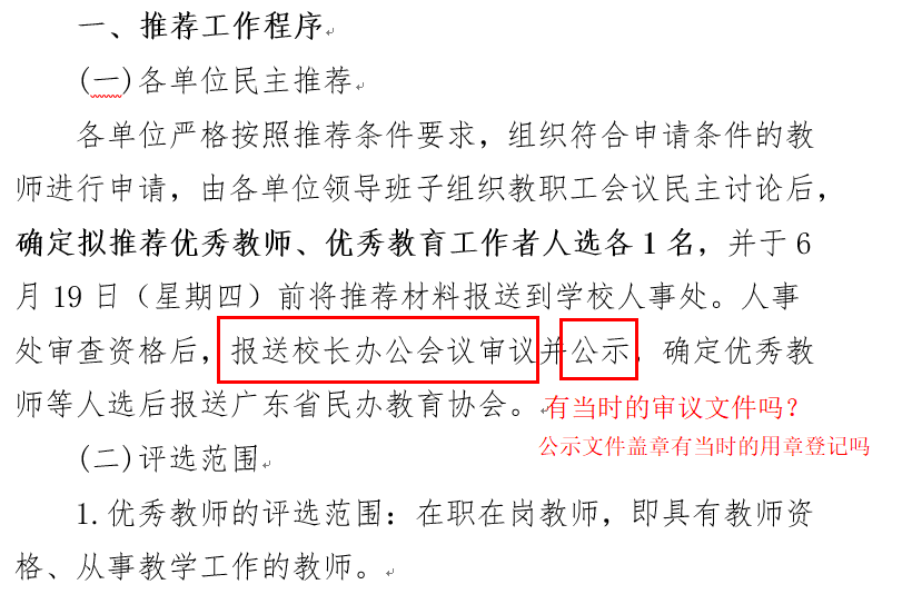 | 内容描述及反馈诉求 | 我是外语学院教师,冒昧在您百忙之中向您反映一个关于今年“民办高校优秀教师”评选工作的问题,希望能得到您的关注。 今年6月13日,学校人事处发布了《关于推荐评选广东省2025年民办教育优秀教师、优秀校长及优秀教育工作者的通知》。我根据文件要求,认真准备了材料并按时提交了申请。根据通知说明,候选人名单应经校长办公会议审议并公示后,再报送至广东省民办教育协会。然而,在申报之后,我始终未在OA系统、工作群或学校官网等任何常规渠道看到有关本次评选结果的公示通知。 直至9月,我从广东省民办教育协会公布的最终评选结果中得知自己未能获选,同时也注意到我校推荐并最终获评的人数仅为3人,远少于其他同类院校(据了解,不少兄弟院校推荐人数均在5人左右)。 随后在10月份,我向人事处邓鹏老师咨询此事。他解释称,当时评选结果采取了纸质张贴方式进行公示,但在我请求查看当时的公示文件或相关存档记录时,未能获得提供(有录音为证)。对于推荐名额偏少的问题,邓老师表示“学校在推荐策略上较为保守”。当我进一步追问评审的具体过程时,邓老师表示最终人选是由“几位正高级职称教师投票”决定的。 对此,我存在几点疑问