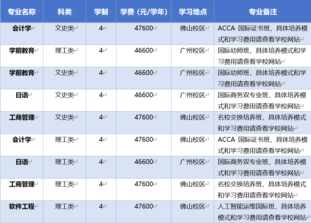 1.住宿费标准:广州校区6500-8700元/年,佛山校区6500元/年。