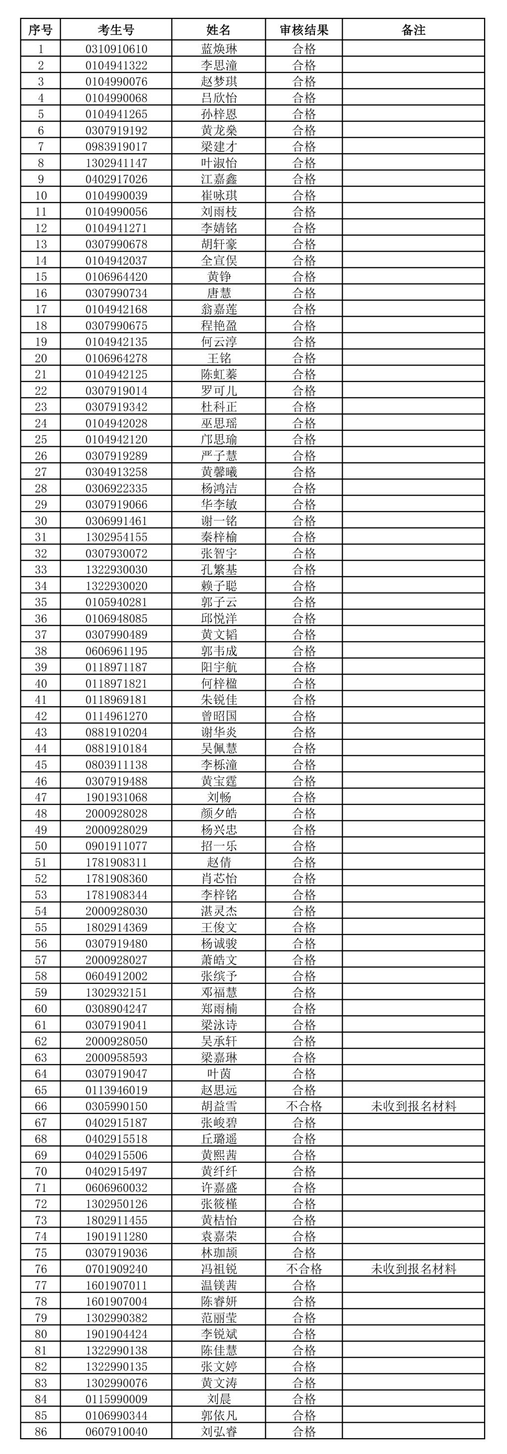 广州工商学院2026年“3+证书”招生考试报名考生报名审核结果(软件工程)